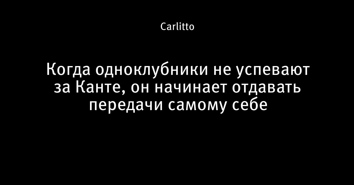 7 марта 2017, 10:36 Когда одноклубники не успевают за Канте, он начинает отдавать передачи самому себе Автор Carlitto Этот пост опубликован в блоге на Трибуне Sports.ru. Присоединяйтесь к крупнейшему сообществу спортивных болельщиков! Другие посты блога Телевизор 3.0 Нголо Канте Челси Вест Хэм