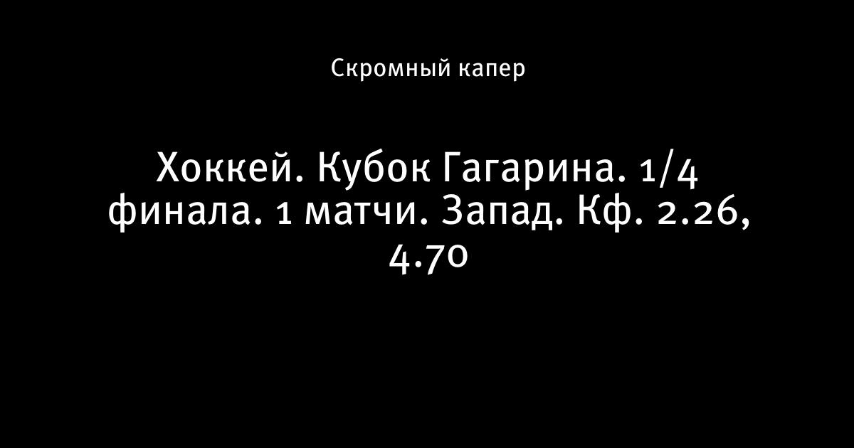 Хоккей. Кубок Гагарина. 1/4 финала. 1 матчи. Запад. Кф. 2.26, 4.70