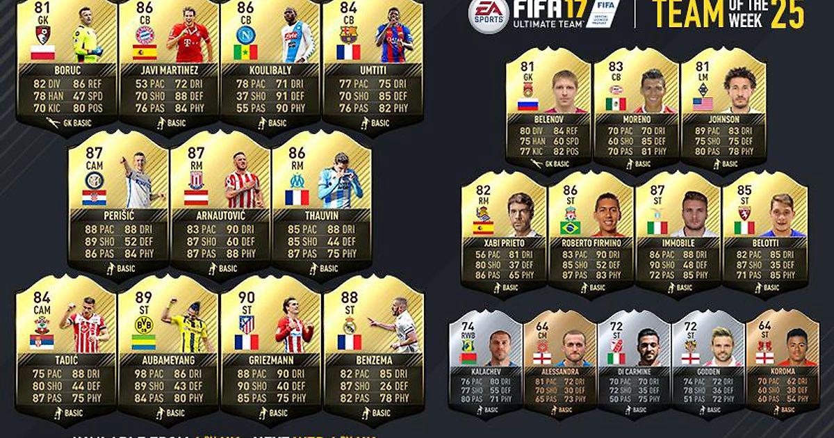 8 марта 2017, 18:28 Новая команда недели FIFA 17 🔥 Два наших. Подписывайтесь на наш ВК паблик про FIFA 17. Там еще больше всего: 🔥 Рейтинг Роналдиньо в FIFA 10. Последний раз крутой 🔥 Как Бориса Ротенберга оценивают в FIFA Автор СуперМарио Этот пост опубликован в блоге на Трибуне Sports.ru. Присоединяйтесь к крупнейшему сообществу спортивных болельщиков! Другие посты блога Жухлые Футбольные Факты | ЖУФФ футбольные симуляторы