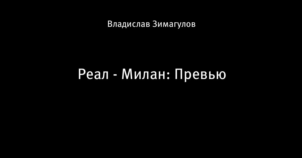 19 октября 2010, 15:50 Реал - Милан: Превью Как и обещал... Автор Владислав Зимагулов Этот пост опубликован в блоге на Трибуне Sports.ru. Присоединяйтесь к крупнейшему сообществу спортивных болельщиков! Другие посты блога ФутВидео