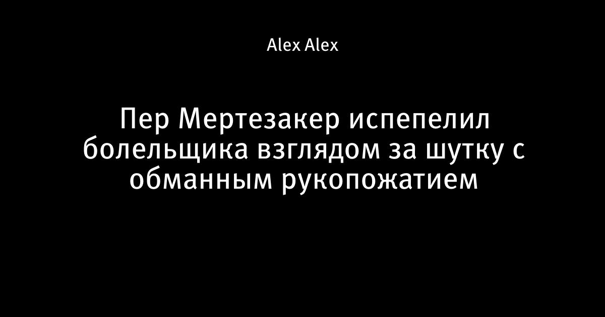 14 марта 2017, 11:35 Пер Мертезакер испепелил болельщика взглядом за шутку с обманным рукопожатием Автор Alex Alex Этот пост опубликован в блоге на Трибуне Sports.ru. Присоединяйтесь к крупнейшему сообществу спортивных болельщиков! Другие посты блога Телевизор 3.0 видео Арсенал Пер Мертесакер