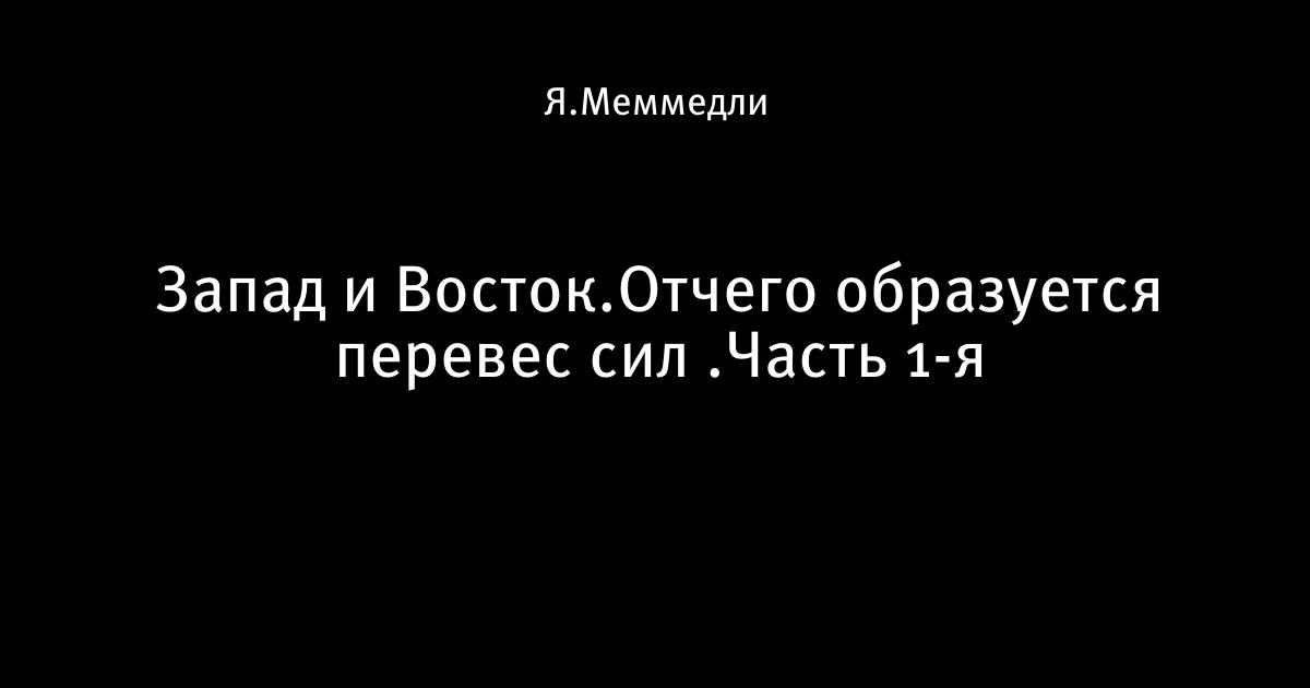 Запад и Восток.Отчего образуется перевес сил .Часть 1-я