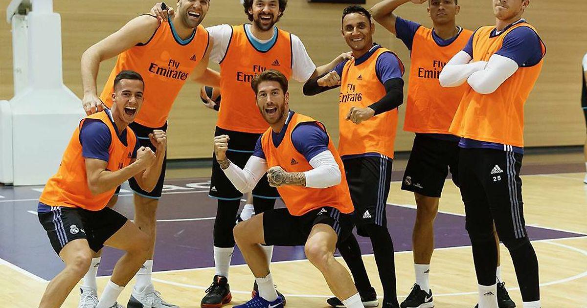 Зинедин Зидан и главный тренер баскетбольного "Реала" Пабло Ласо устроили совместную тренировку.