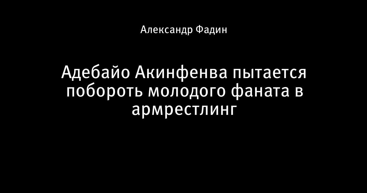 16 марта 2017, 21:00 Адебайо Акинфенва пытается побороть молодого фаната в армрестлинг Автор Александр Фадин Адебайо Акинфенва