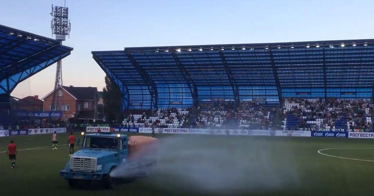 Вот так по томскому стадиону «Труд» развозят питьевую воду. Это – великое сибирское ноу-хау, и будет очень жаль, если вместе со своими безвестными изобретателями оно опустится в ФНЛ.