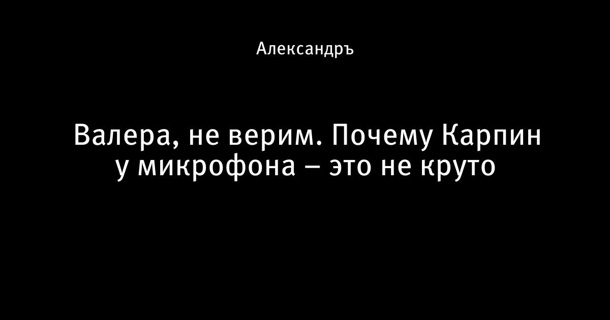 Валера, не верим. Почему Карпин у микрофона – это не круто
