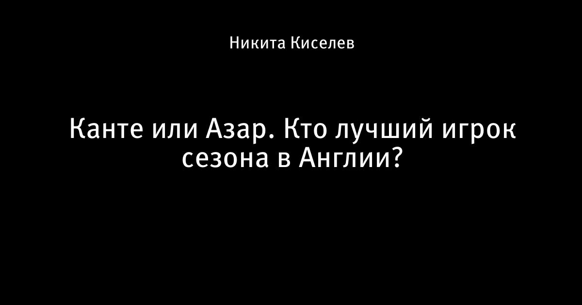 В опросе экспертов BBC (Марк Шварцер, Крис Саттон, Алан Ширер, Крис Уоддл и другие уважаемые люди) Канте уделывает Азара со счетом 9:3. Среди проголосовавших за бельгийца – экс-игрок «Ливерпуля» Дэнни Мерфи. После пары обязательных абзацев о крутости Нголо Мерфи объясняет, почему Азар: «Единственная причина, по которой Азар выше, это то, что случаются моменты, когда вам нужно что-то экстраординарное, например, как в кубковой победе «Челси» над «Манчестером Юнайтед». Азар способен менять игру, он тот, кто превращает ничью в победу. Если бы я сидел в раздевалке перед игрой с «Челси» и не встретил бы фамилию Азар в составе, то, не будь я полузащитником, куда сильнее обрадовался этому, чем отсутствию Канте».