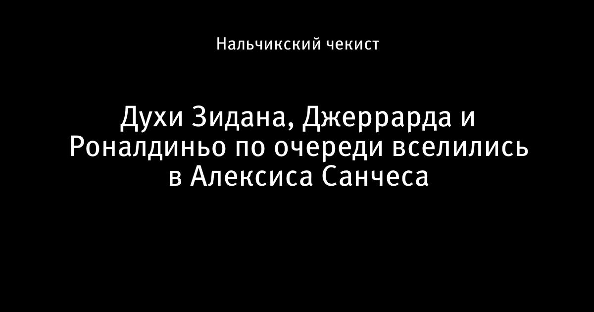 29 марта 2017, 17:05 Духи Зидана, Джеррарда и Роналдиньо по очереди вселились в Алексиса Санчеса Автор Нальчикский чекист Этот пост опубликован в блоге на Трибуне Sports.ru. Присоединяйтесь к крупнейшему сообществу спортивных болельщиков! Другие посты блога Телевизор 3.0 Роналдиньо Зинедин Зидан Сборная Чили по футболу Алексис Санчес Стивен Джеррард