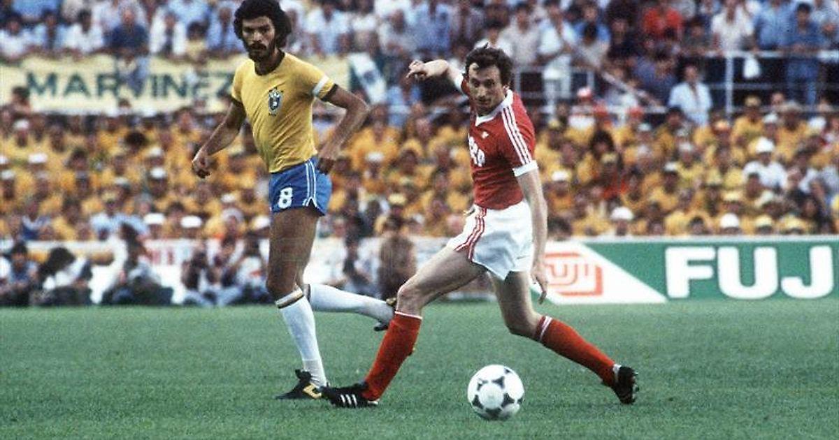 ЧМ-82. СССР-БРАЗИЛИЯ. СОВЕТСКИЙ ФУТБОЛЬНЫЙ ХУДОЖНИК и ЭСТЕТ Ю.ГАВРИЛОВ против другого ФУТБОЛЬНОГО ПОЭТА с БОЛЬШОЙ БУКВЫ-СОКРАТЕСА! Но в отличии от СОКРАТЕСА (в сборной Т.САНТАНЫ!), Ю.ГАВРИЛОВ в окружении киевских полузащитников и бескрыло-прагматичной доктрины Лобановского тогда, в Испании, оказался явно в ЧУЖОМ "созвездии", а не в СВОЕЙ КОМБИНАЦИОННОЙ Стихии!..