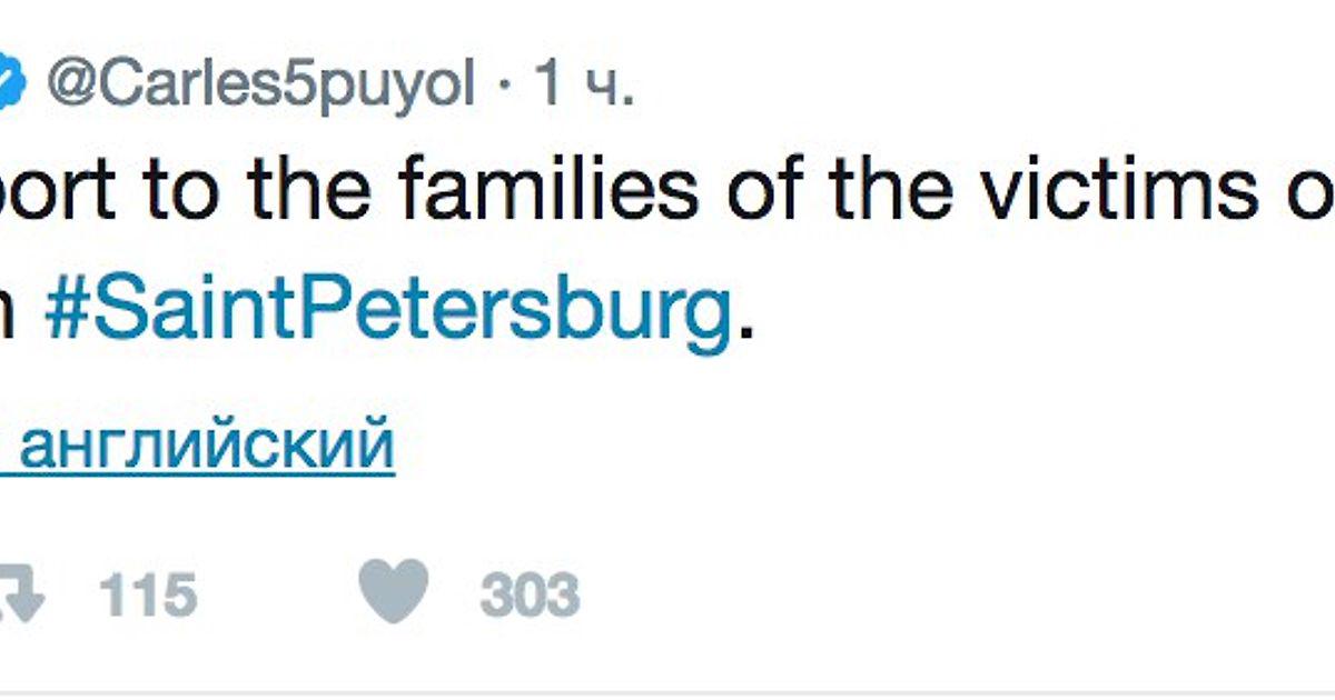 Twitter Пуйоля: "Вся моя поддержка семьям погибших в метро в Санкт-Петербурге"