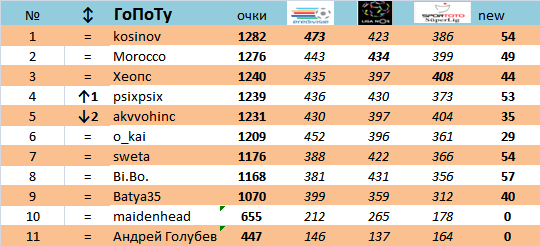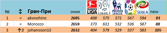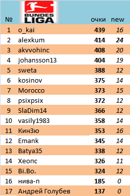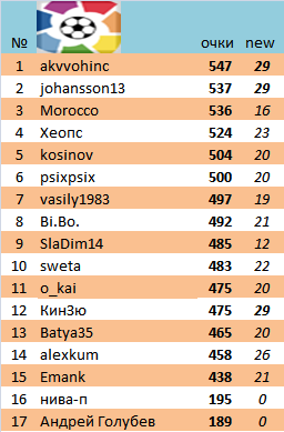 В Испании сорвали куш 3 синьора : akvvohinc, johansson13 (2-ю неделю подряд) и КинЗю (по 29 очков)