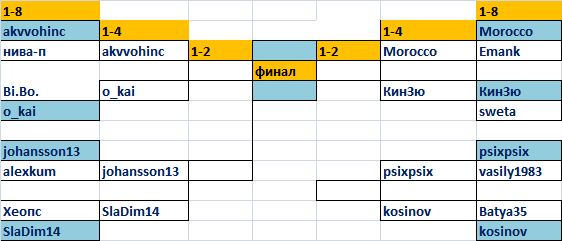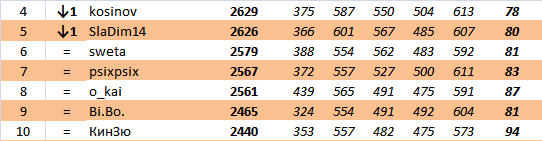 В паре sweta-КинЗю зафиксирована ...ничья 268-268...
