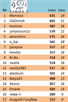 Во Франции 2-ю неделю подряд феерит хипстер o_kai (23 очка)