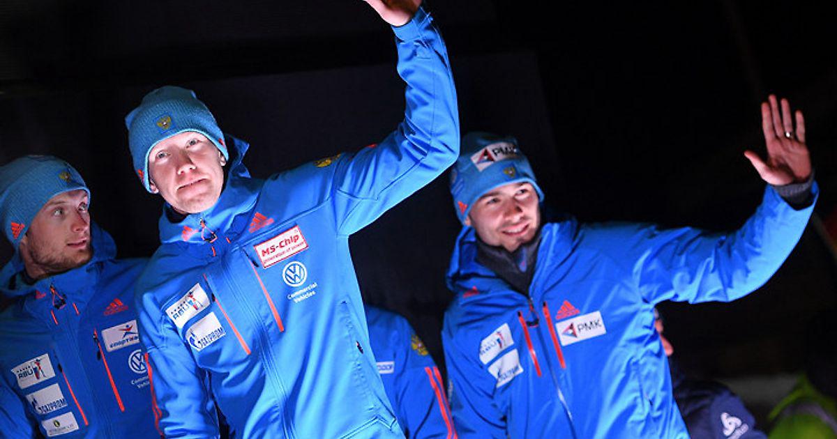 Мужчины: Антон Шипулин, Евгений Гараничев, Максим Цветков, Антон Бабиков, Александр Логинов, Алексей Волков, Матвей Елисеев, Юрий Шопин.