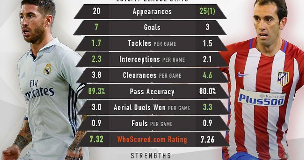 Сравнительная статистика Серхио Рамоса и Диего Година в текущем сезоне Ла Лиги
