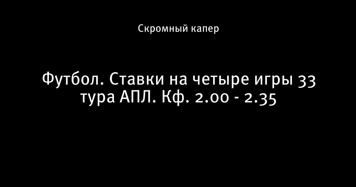 Футбол. Ставки на четыре игры 33 тура АПЛ. Кф. 2.00 - 2.35