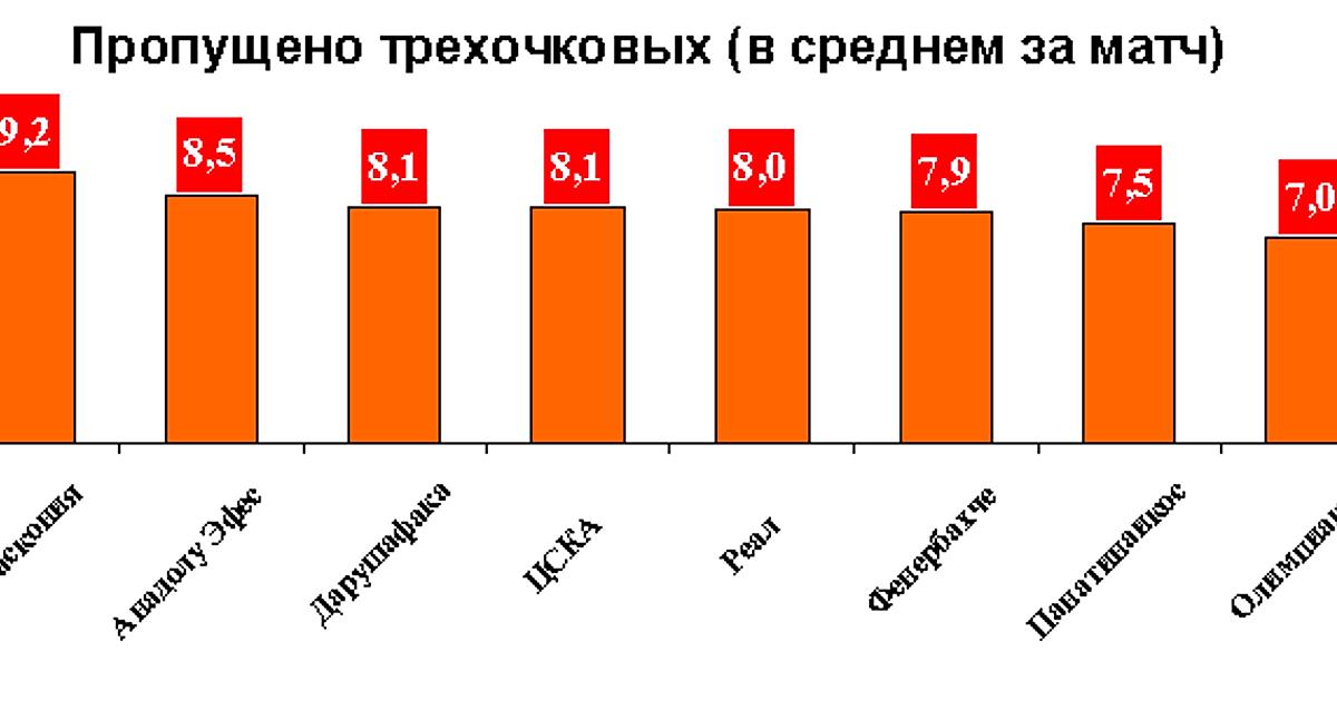 Испанцы не входят в число лучших команд ни по количеству точных трехочковых, ни по проценту их реализации. Но здесь цифры выглядят несколько обманчиво. Нельзя недооценивать угрозу с периметра. Для этого достаточно сравнить статистику «трешек» басков в победных и проигранных матчах.