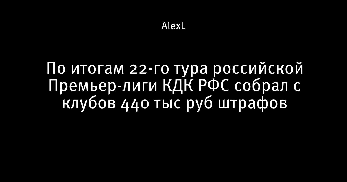 По итогам 22-го тура российской Премьер-лиги КДК РФС собрал с клубов 440 тыс руб штрафов