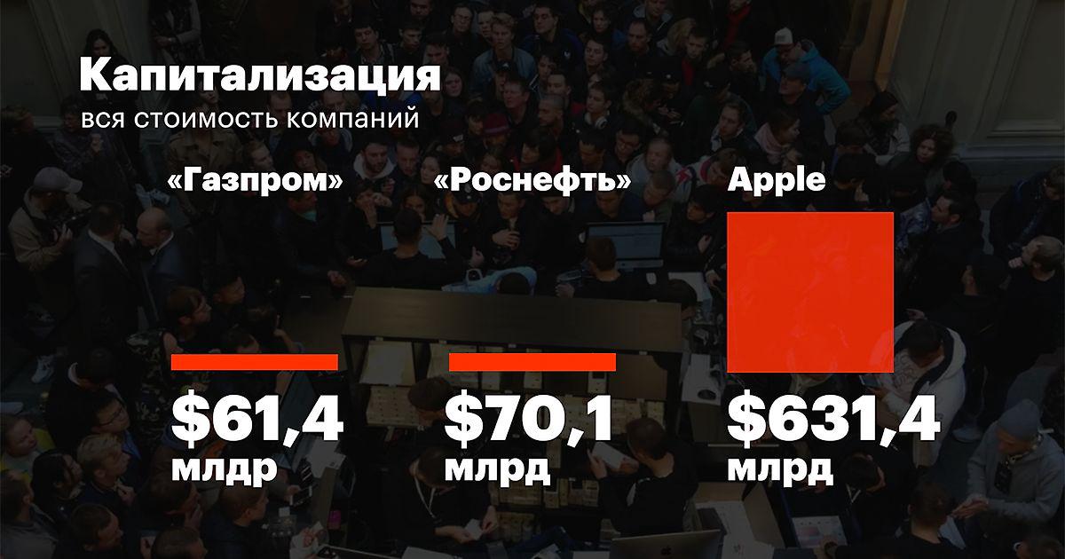 Правда капитализация Apple не сравнима со стоимостью Газпрома и Роснефти: