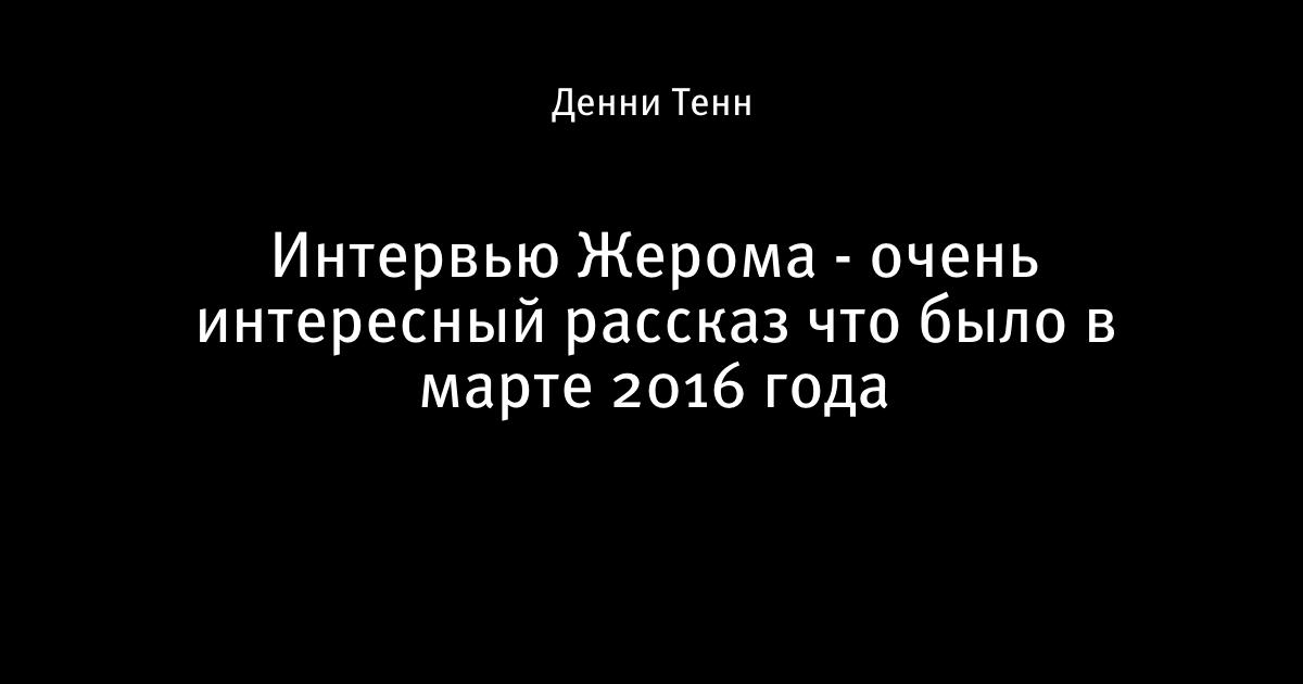 Интервью Жерома - очень интересный рассказ что было в марте 2016 года