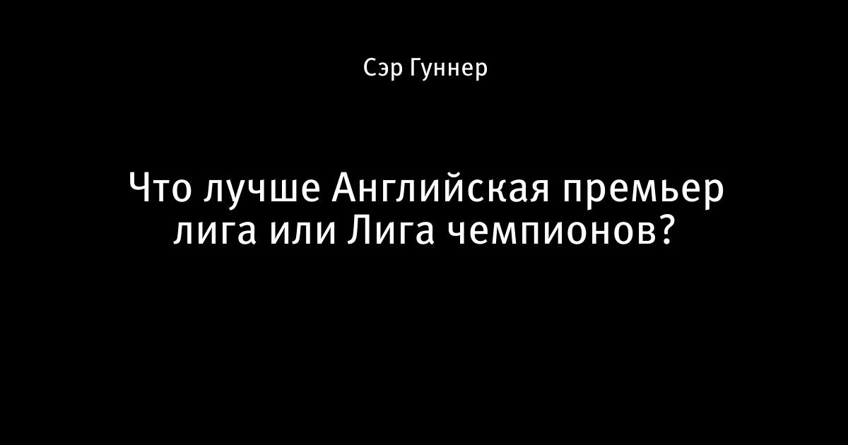 Здравствуйте,уважаемые читатели! Сегодня мы с товарищем попытаемся выяснить что же лучше Лига чемпионов или Английская премьер лига?Тема нашего поста немного некоректна, потому что слово лучше представляет из себя довольно широкое понятие.Да к тому же Лига Чемпионов-это мировое первенство , а Английская премьер лига-это элитный английский внутренний чемпионат.В связи с этим точный ответ мы дать не можем.Давайте для начала кратко сформулируем понятия этих двух турниров.Лига чемпионов(существует с 1955 года)-это самый престижный клубный футбольный европейский турнир.Лига чемпионов в отличии от Английской премьер лиги состоит из нескольких этапов.Последний этап или же плей офф состоит из нескольких стадий.Лига чемпионов напоминает Кубок Англии,то есть команды играют навылет .В каждой стадии кроме финала команды играют друг с другом по 2 раза:один раз дома и один раз на выезде.По сумме двух игр определяется какая команда отправится в следущую стадию.Лига чемпионов не похожа на внутренние чемпионаты , потому что команды играют сразу в нескольких турнирах помимо Лиги чемпионов.Игроки попросту не выдержат такой нагрузки и это может сказаться на качестве и зрелищности игры.Но организаторы этого турнира постарались исключить такое понятие как удача.То есть иногда сильная команда может по различным необъяснимым причинам проиграть команде классом ниже.Поэтому ,проиграв матч,команда может взять реванш в ответном матче. Теперь давайте кратко дадим характеристику Английской премьер лиге.Как и в любом другом внутреннем чемпионате каждая команда играет со всеми остальными командами по 2 раза.АПЛ выделяется среди других чемпионатов накалом страстей и борьбой.Это пожалуй единственный внутренний чемпионат ,где на чемпионство претендует довольно много команд.Именно поэтому АПЛ самый попурный внутренний чемпионат.Многие любители Ла Лиги и Серии А объясняют преимущество АПЛ раскруткой и большим количеством вложенных туда денег.Доля истины здесь есть,но в целом они глубоко заблуждаются. Теперь когда мы кратко ознакомились с этими турнирами , давайте приступим к нашей дисскусии.Я буду отстаивать честь Лиги чемпионов,а мой товарищ будет отстаивать честь Английской премьер лиги. Я:Мне кажется , что почти каждый футболист мечтает победить в Лиге чемпионов и поднять ушастика над головой.К тому же Лига чемпионов не раз мотивировала футболистов играть в каждом матче так,что этот матч последний.К тому же Лига чемпионов не раз помогала различным скаутам из разных стран находить золотых талантливых игроков.Я думаю , что ни для кого не секрет , что благодаря яркой игре Монако в Лиге чемпионов мир узнал О Мбаппе, Сидибе и других молодых потенциальных ребятах.Теперь такие гранды как Барселона планируют купить этих игроков.Монако как известно выступает в Лиге 1 - высшей французской лиге, которая особо не славится популярностью.И если бы не Лига чемпионов,мир мог бы и не узнать об этих игроках.В Лиге чемпионов ежегодно выступают лучшие команды мира.Матчи Лиги чемпионов на фоне внутренних чемпионатов являются большой редкостью , поэтому приковывают зрителей к себе с первого взгляда.К тому же обычно болельщики смотрят один или два чемпионата, а Лига чемпионов включает в себя как мининум 8 различных стран.К примеру вы смотрите АПЛ и Серию А,но не 