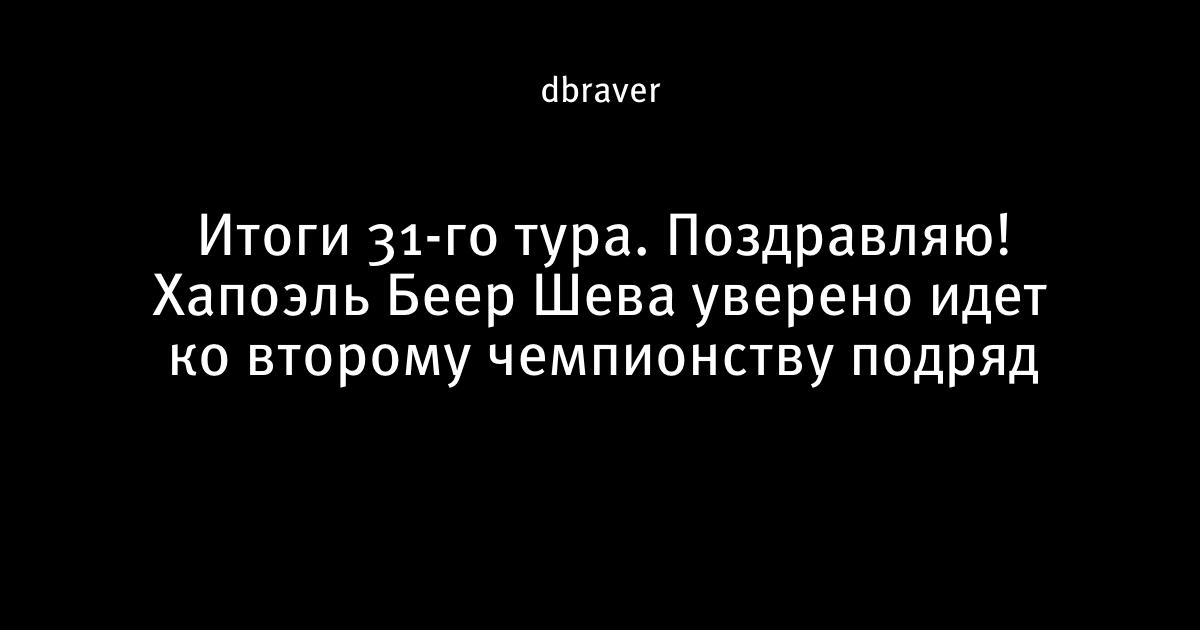 Итоги 31-го тура. Поздравляю! Хапоэль Беер Шева уверено идет ко второму чемпионству подряд