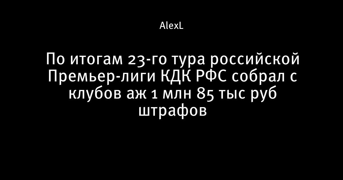 По итогам 23-го тура российской Премьер-лиги КДК РФС собрал с клубов аж 1 млн 85 тыс руб штрафов