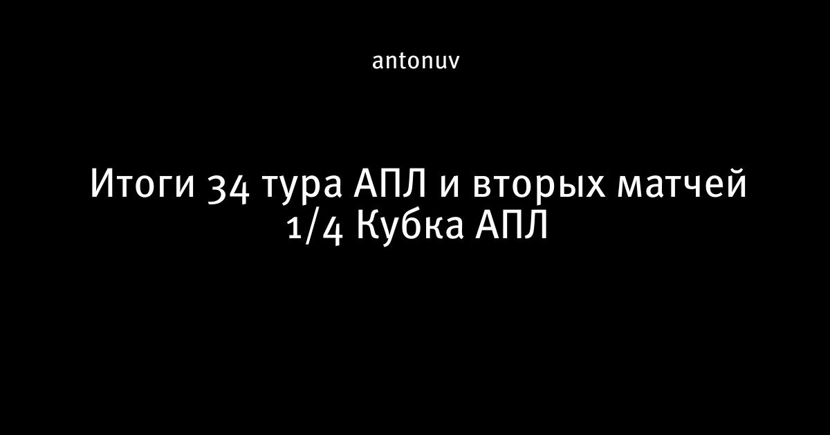 Итоги 34 тура АПЛ и вторых матчей 1/4 Кубка АПЛ