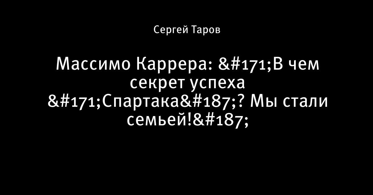 1 мая 2017, 10:14 Массимо Каррера: «В чем секрет успеха «Спартака»? Мы стали семьей!» Прессконференция после дерби. Автор Сергей Таров Этот пост опубликован в блоге на Трибуне Sports.ru. Присоединяйтесь к крупнейшему сообществу спортивных болельщиков! Другие посты блога Спартак ТВ Спартак Массимо Каррера