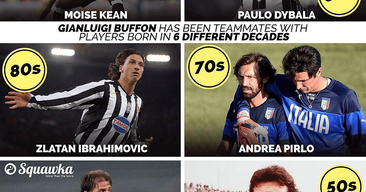Буффон играл в одной команде с футболистами, которые родились в шести разных десятилетиях