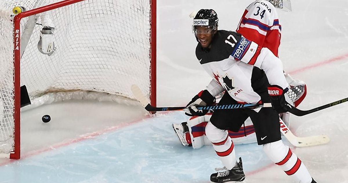 Главный матч первого дня турнира в группе А завершился победой сборной Канады. Матч не был таким зрелищным, как два года назад в Праге. Начало получилось очень бодрым. Чехи осадили ворота Кэлвина Пикара, но не смогли забить в течение первых пяти минут. А потом пропустили атаку Шайфли и О'Райлли. Нападающий Баффало получил передачу от своего партнёра и не промахнулся по воротам Мразека с пяти метров. Это был всего лишь второй бросок канадцев по чужим воротам, второй за 6 минут. После гола команды начали обмениваться моментами, но Пикар и Мразек спокойно отражали все, что летело в их сторону. До перерыва счёт не менялся.