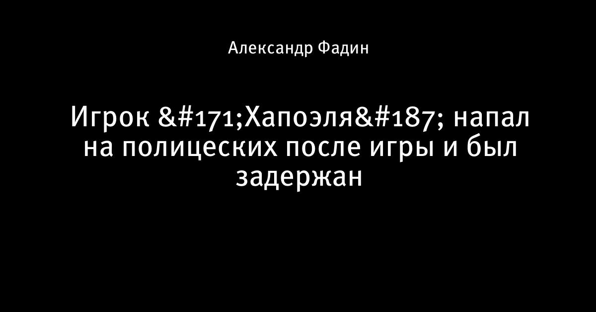 7 мая 2017, 11:56 Игрок «Хапоэля» напал на полицеских после игры и был задержан Все началось с этого: В итоге, Тото был задержан: Автор Александр Фадин Хапоэль Тель-Авив Тото Тамуз высшая лига Израиль