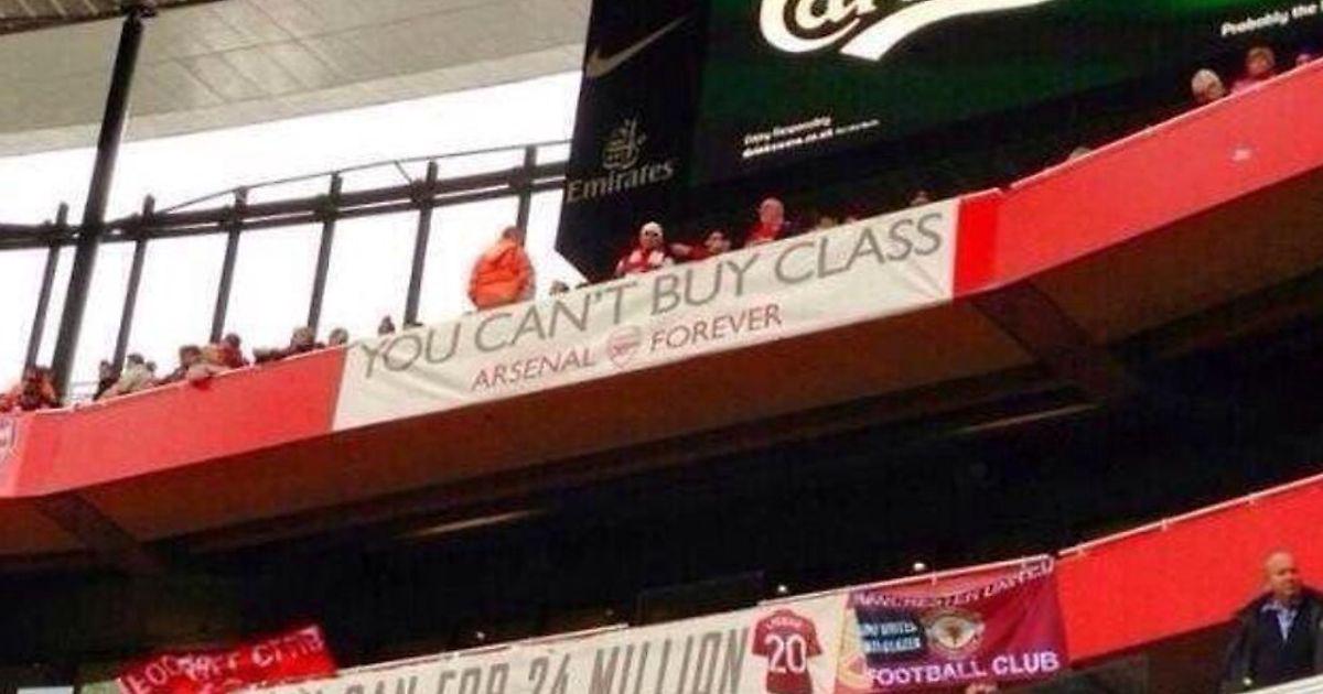 Баннер фанов «Арсенала»: «Ты не можешь купить класс». Баннер фанов «МЮ»: «Ты можешь за 24 миллиона».