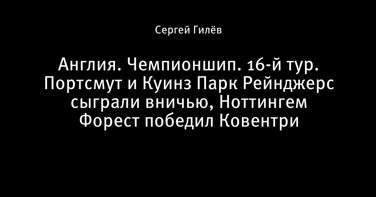 Англия. Чемпионшип. 16-й тур. Портсмут и Куинз Парк Рейнджерс сыграли вничью, Ноттингем Форест победил Ковентри