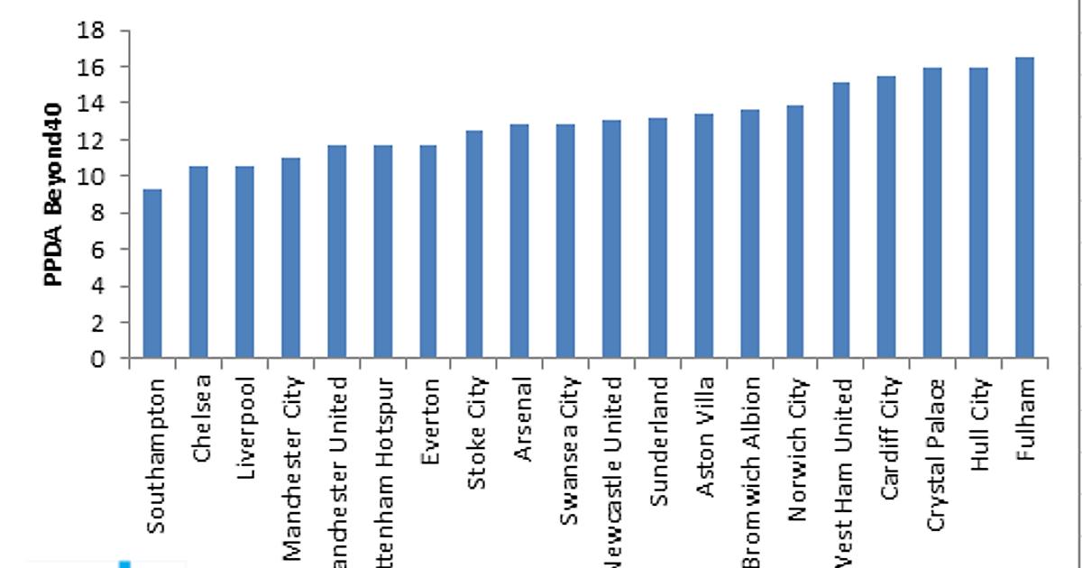 Маурисио Почеттино в этом плане является одним из эталонных тренеров, которые любит играть в высокий прессинг. Времена, когда он тренировал «Саутгемптон», являются хорошим примером того, как может PPDA выглядеть.