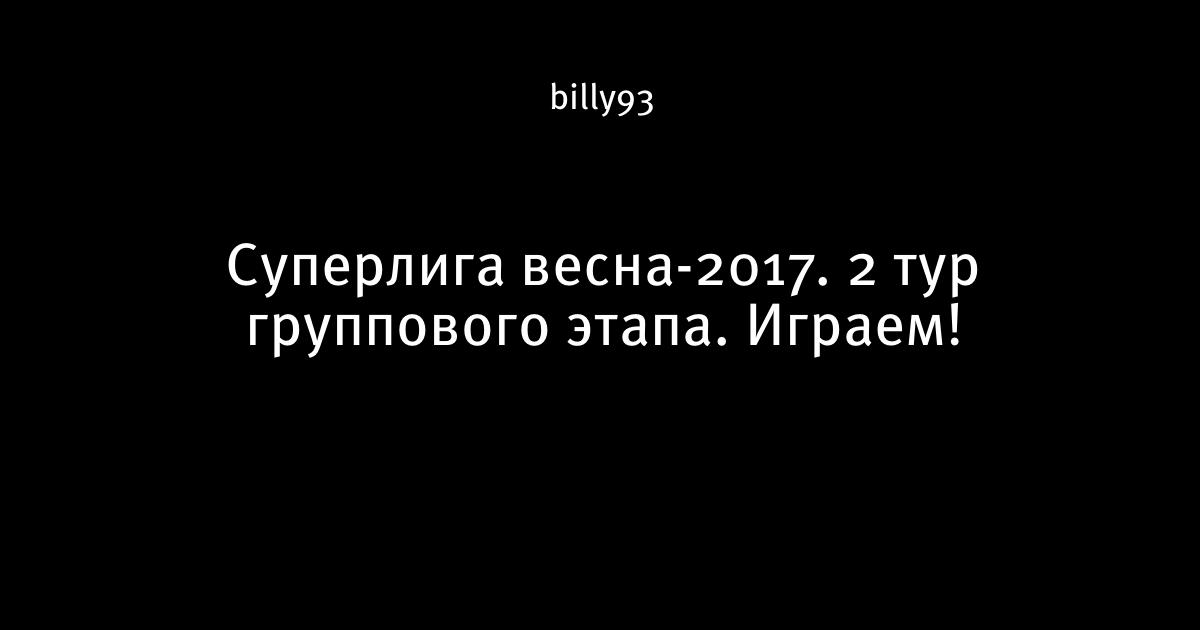 Суперлига весна-2017. 2 тур группового этапа. Играем!