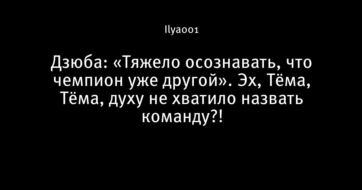 Во-вторых, можно хотя бы назвать команду, которая стала чемпионом?! Я понимаю, у Дзюбы были разногласия с руководством и т.д., но публично поздравить ребят, которые играли с тобой в одном клубе и по сей день выступают вместе с тобой в сборной, что, сложно?! Они разве виноваты в том, что у тебя были какие-то проблемы с руководителями «Спартака»?! В конце концов, покажи, что ты мужчина, а не истеричка!