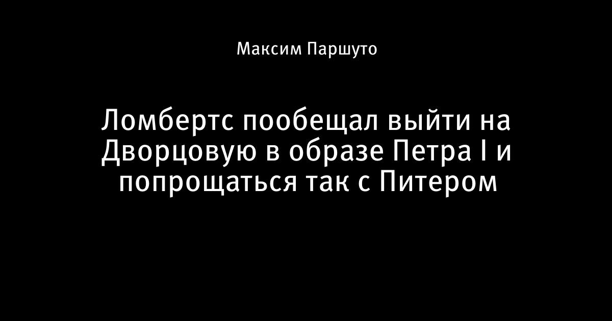 Ломбертс пообещал выйти на Дворцовую в образе Петра I и попрощаться так с Питером