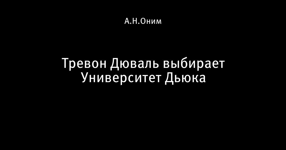 16 мая 2017, 00:02 Тревон Дюваль выбирает Университет Дьюка Классный мультфильм, добрый очень. Только видно, что готовился он очень давно. Автор А.Н.Оним Этот пост опубликован в блоге на Трибуне Sports.ru. Присоединяйтесь к крупнейшему сообществу спортивных болельщиков! Другие посты блога Долой бардак в баскетболе