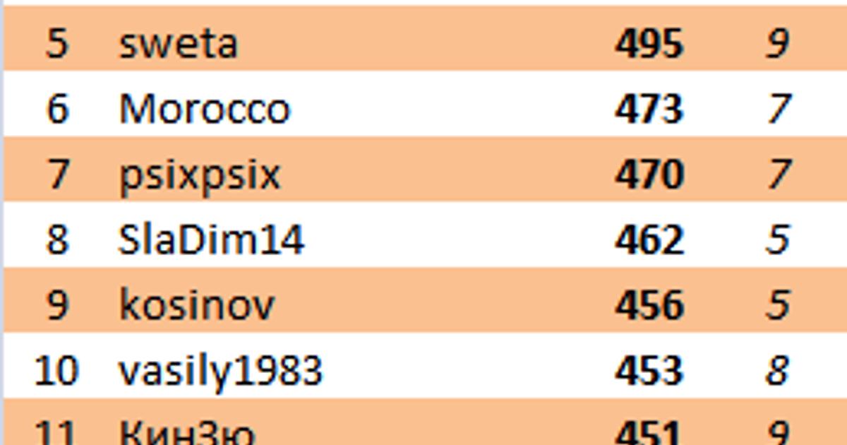 В АПЛ невообразимый результат выдала sweta (39 очков)