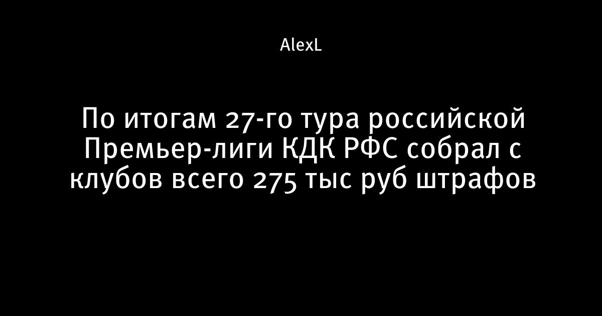 По итогам 27-го тура российской Премьер-лиги КДК РФС собрал с клубов всего 275 тыс руб штрафов