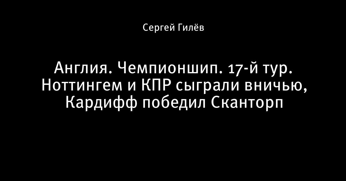 Англия. Чемпионшип. 17-й тур. Ноттингем и КПР сыграли вничью, Кардифф победил Сканторп