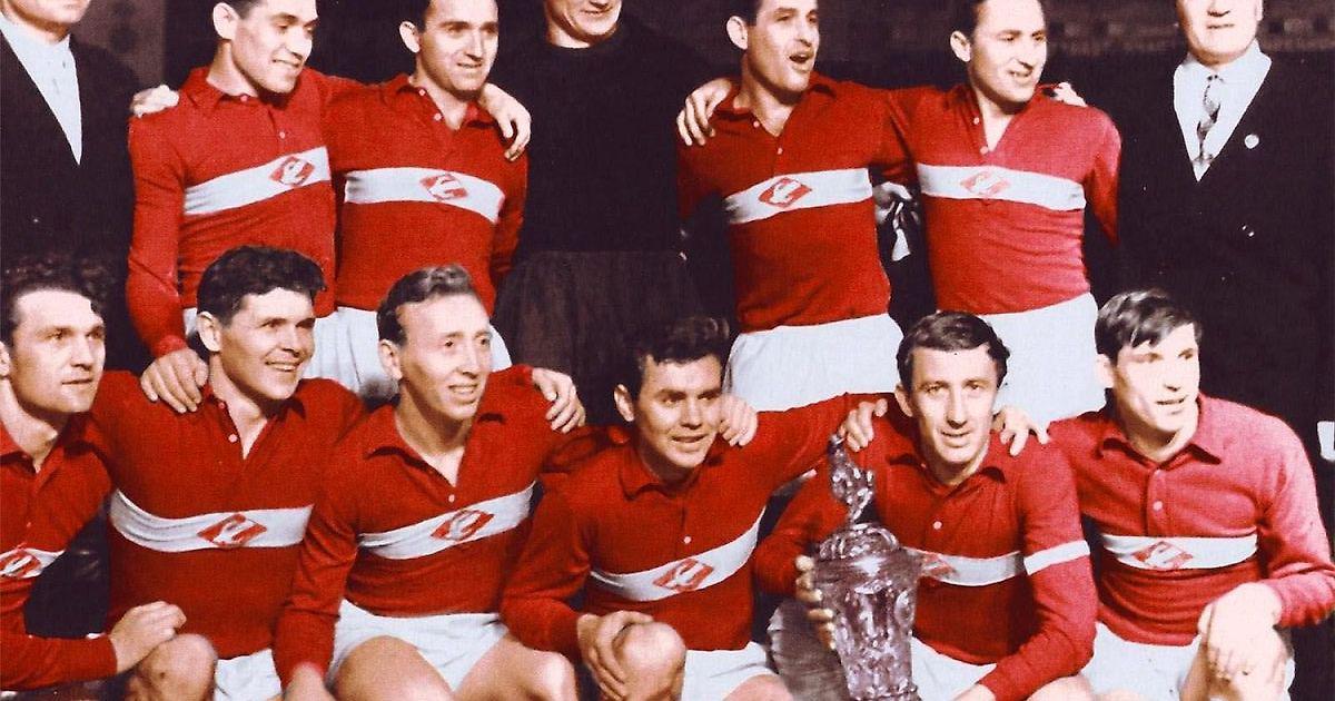В 1939-м «Спартак» оформил второй «золотой дубль» подряд. Кстати, по фото видно, что традиция «провоза» трофея по городу имеет глубокие корни. Хорошо, что среди спартаковцев не нашлось своего Серхио Рамоса, и хрустальный кубок не упал под колеса «автобуса».