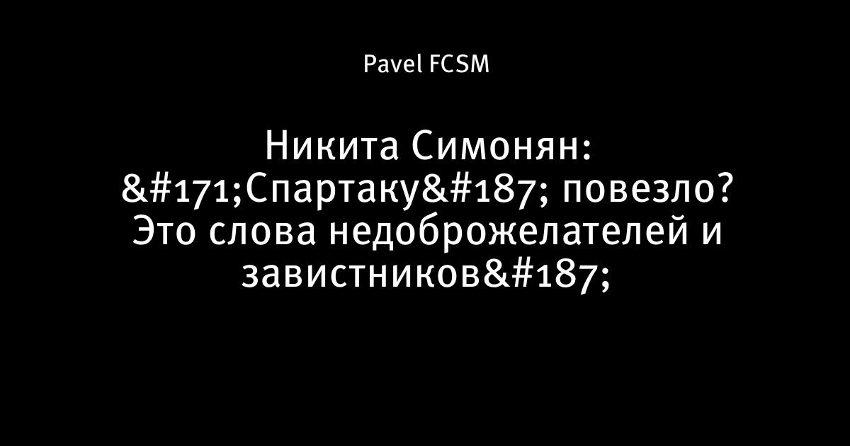Никита Симонян: «Спартаку» повезло? Это слова недоброжелателей и завистников»