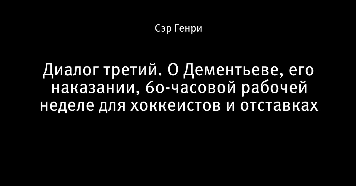 Диалог третий. О Дементьеве, его наказании, 60-часовой рабочей неделе для хоккеистов и отставках