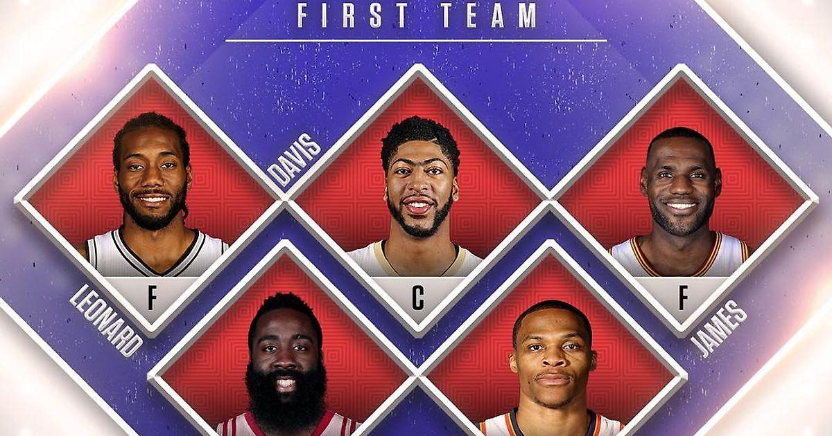 Расселл Уэстбрук («Оклахома-Сити»), Джеймс Харден («Хьюстон»), Кавай Ленард («Сан-Антонио»), ЛеБрон Джеймс («Кливленд»), Энтони Дэвис («Новый Орлеан»).