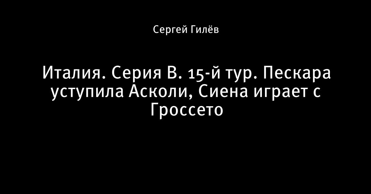 Италия. Серия В. 15-й тур. Пескара уступила Асколи, Сиена играет с Гроссето