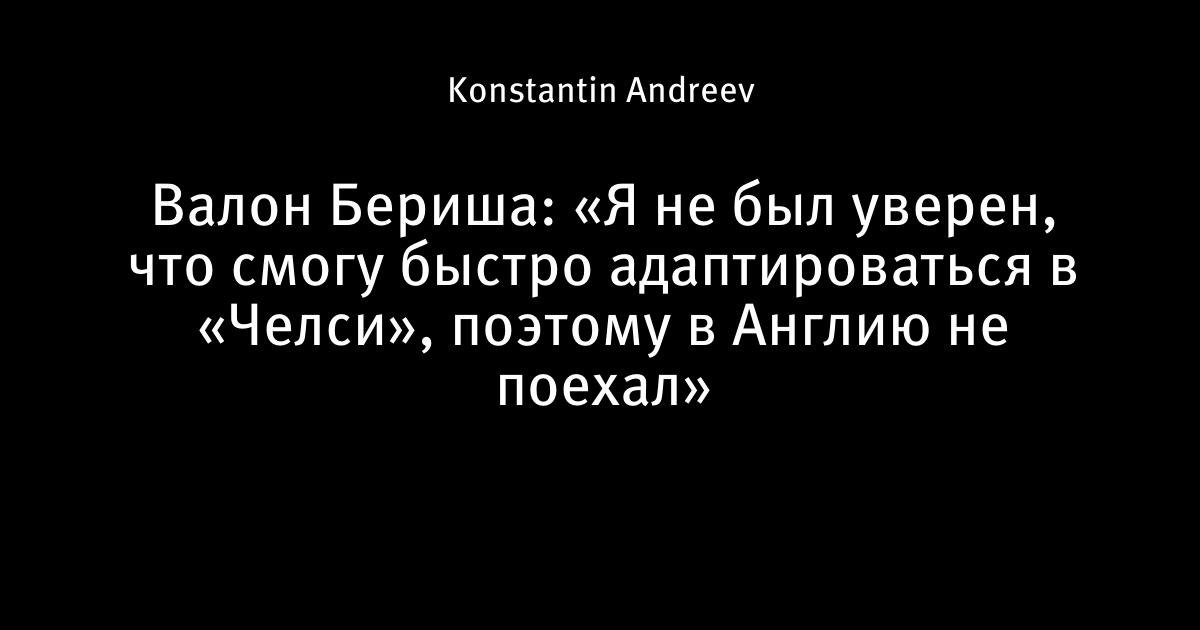 Валон Бериша: «Я не был уверен, что смогу быстро адаптироваться в «Челси», поэтому в Англию не поехал»