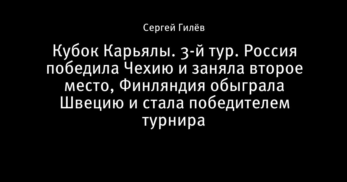 Кубок Карьялы. 3-й тур. Россия победила Чехию и заняла второе место, Финляндия обыграла Швецию и стала победителем турнира