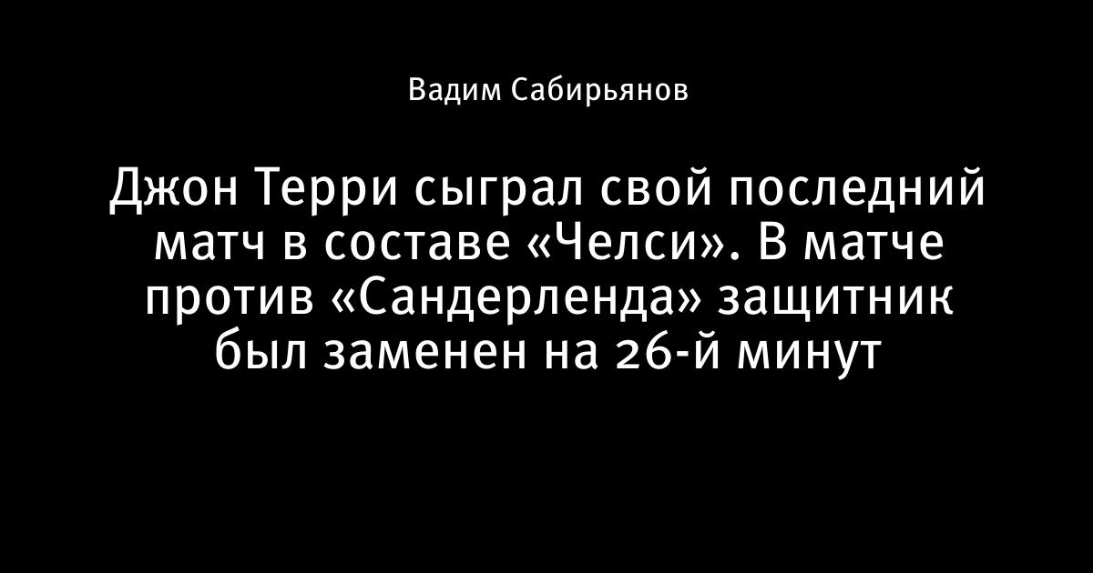Джон Терри сыграл свой последний матч в составе «Челси». В матче против «Сандерленда» защитник был заменен на 26-й минут